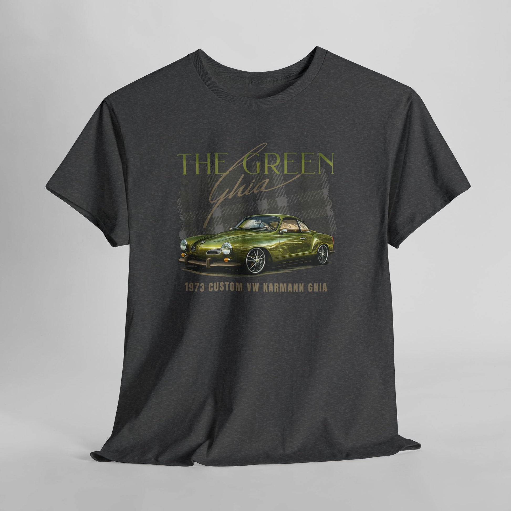 Celebrate the legacy of The Green Ghia with this full-custom Karmann Ghia t-shirt, created for lovers of classic Volkswagens and one-of-a-kind automotive builds.